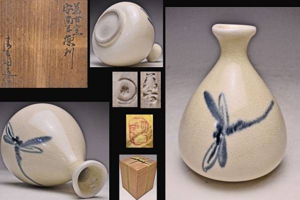 - 加賀月華 ★ 萬古焼安南トンボ徳利 ★ 共箱共布 ★ 検 加賀瑞山 板谷波山