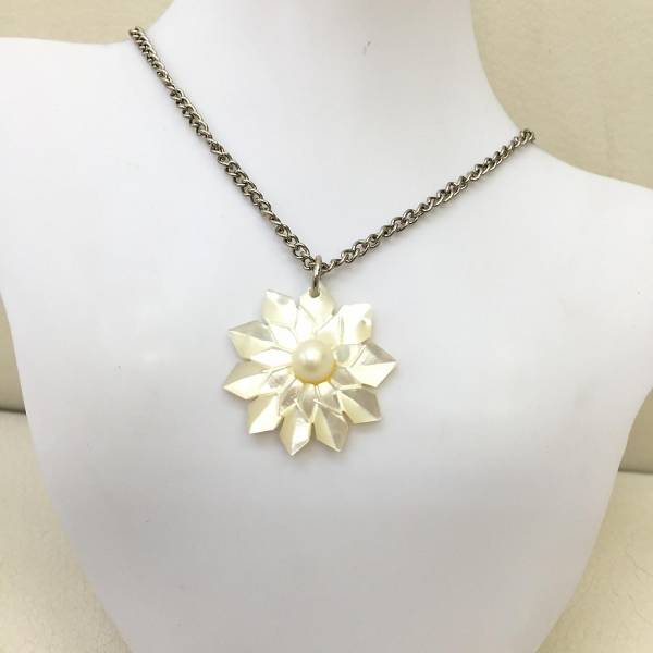 - 【ネックレス】約46cm シェル(貝)のような美しい花のデザイン 雪の結晶 上品 可憐 シック