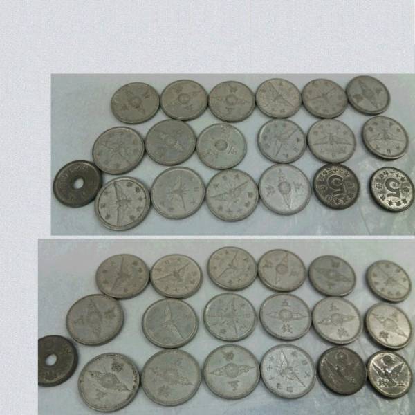 - 3種類の白い5銭硬貨19枚穴有1枚、5銭2枚、横5銭16枚USED 〇B10-132-F