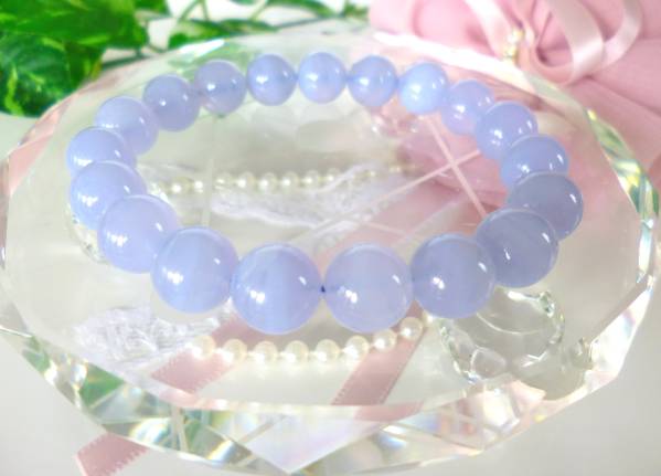 > ☆リラックスヒーリング☆愛を育む☆穏やかな癒し☆高品質AAA☆ナミビア産☆天然色☆ブルーカルセドニー☆ ☆10mm☆ ☆16cm☆