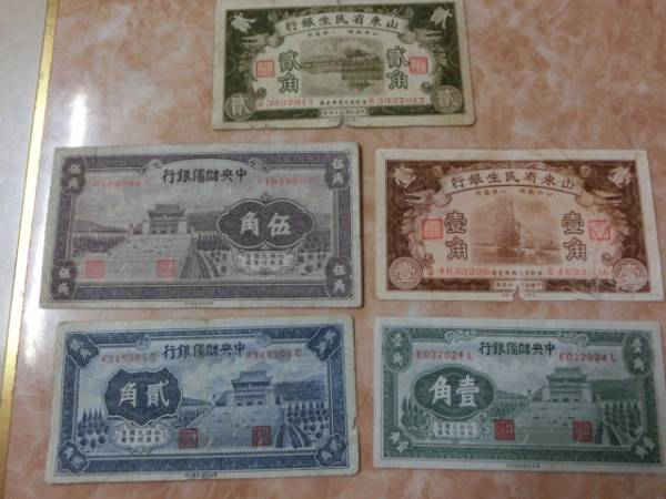 - ★ 中央儲備銀行/山東省民生銀行 壹角・貳角・伍角 5枚 ★ No.22