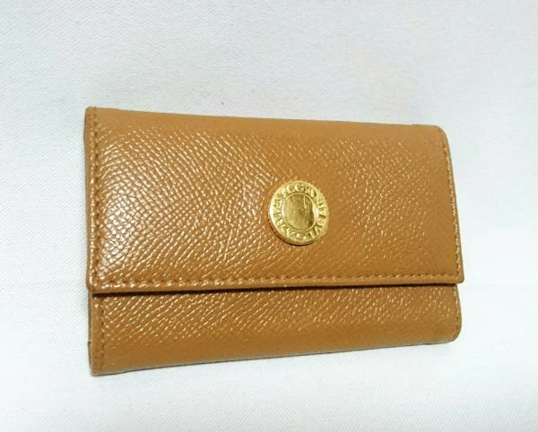 - 正規 ブルガリBVLGARI ロゴボタン 6連キーケース 茶×金 男女兼用 レザーキーホルダー キーリング 男女兼用可☆ゴールド×キャメルブラウン