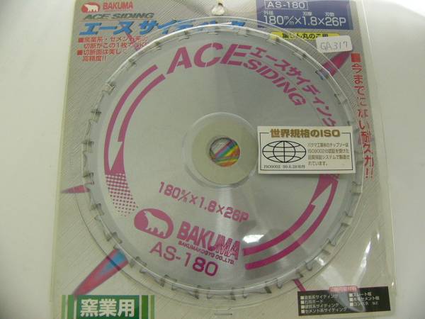 - 新品 BAKUMA(バクマ) エースサイディング 窯業用 集じん丸のこ用 180×1.8×26P AS-180 1枚