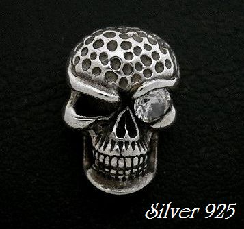 - シルバー925銀のジルコニア付エンボス ヘッド スカル コンチョ/ボタン飾り