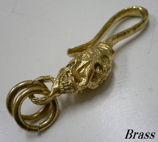 - 真鍮製Brassスカル ヘッド ブラス釣り針キーフック/キーホルダー パーツ