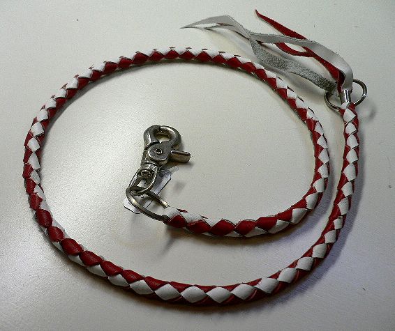 - 牛革4本編みウォレットロープ白×赤/ウォレットチェーンALL20%OFF