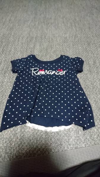 > ★女の子 半袖シャツ トップス ドット紺色 100 美品