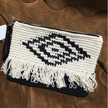 - 匿名配送 送料無料 新品 かぎ編み オルテガ柄 クラッチバッグ 鍵編み ネイティブ柄 フリンジ サーフ ビーチ アメリカン