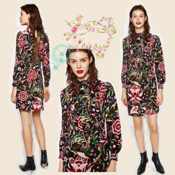 - sale!新品タグ付☆ZARAザラ☆バックレース花柄フリルミニワンピース