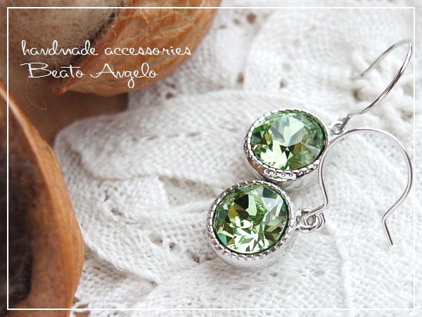 > ◇◇+angelo+スワロフスキー 1088のピアス(p-067)ペリドット S ライトグリーン 一粒 チタン 樹脂 イヤリング