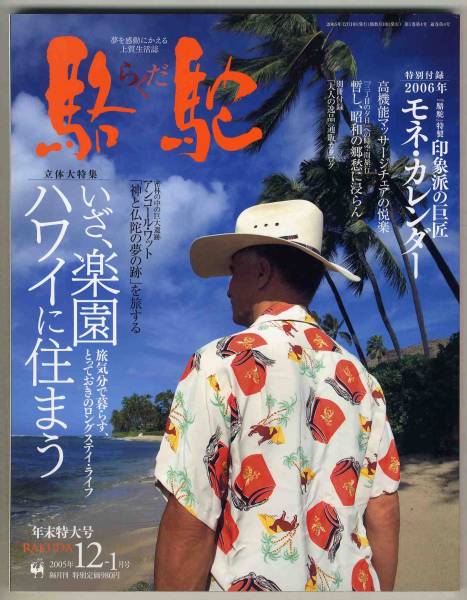 書名/記事: 05.12-1 駱駝らくだ/楽園ハワイに住まう、アンコールワット「神と仏陀の夢の跡」を旅する、昭和ノスタルジー特集、弘法大師・空海の道を辿る、英国紳士のジャケット&コート、夫婦で旅するソウル、瀬戸内・美術館紀行のすすめ、…