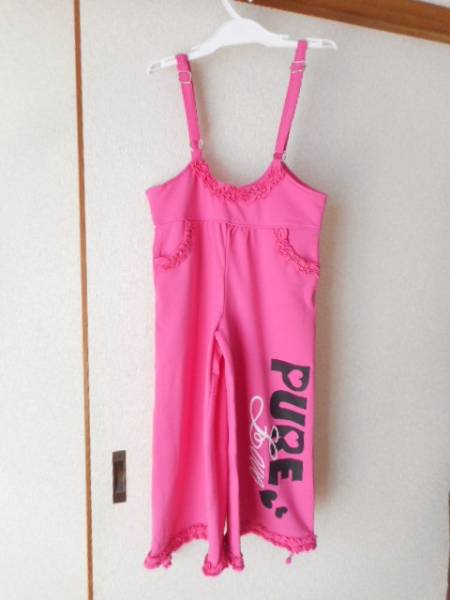 > ★新品★背中にリボン&フリルと英語ロゴが付いたオーバーオール・パンツ・ズボン ピンク