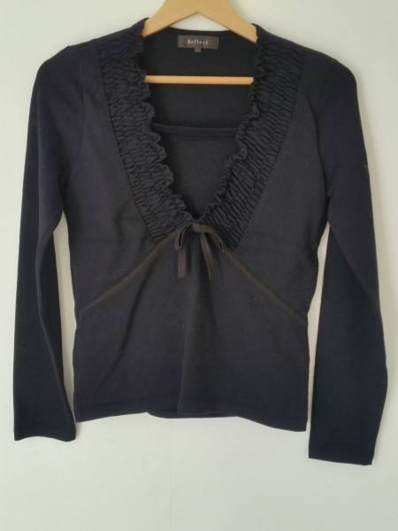 > 新品未使用 Reflectリフレクト Vネック ギャザー 長袖ニット セーター 9号 サイズM/S 黒 ブラック ワールド 日本製 送料無料 匿名配送