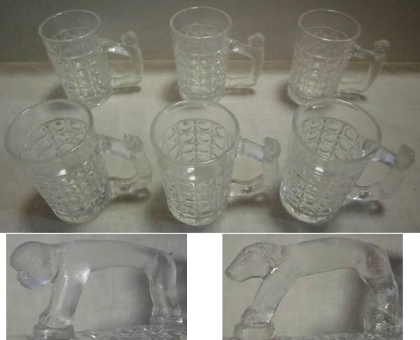 > ★ 犬と猿の持ち手が可愛い 気泡 レトロデザイン ジョッキ ビアジョッキ グラス 猿3客 犬3客 計6客 生ビール 口径7.5cm 高さ11cm 酒器★