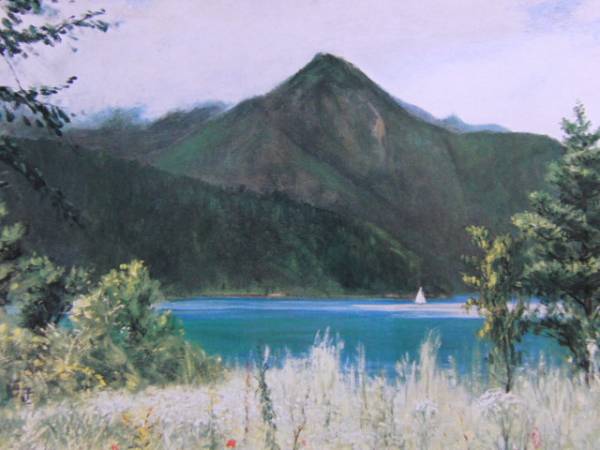 - 岡田三郎助、『河口湖畔』、希少画集画、高級新品額・額装付、状態良好、送料無料