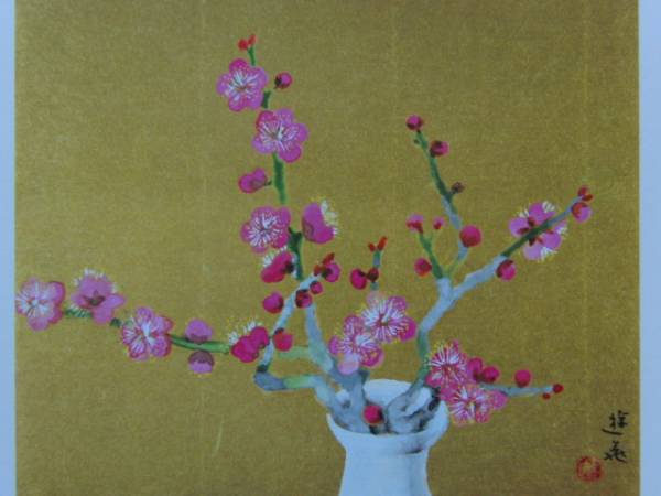 - 小倉遊亀、紅梅、希少画集画、新品額装付、状態良好、salt