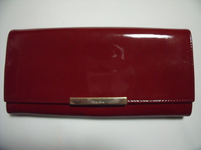 - $ 美品 $ 訳あり◆ miumiu ◆ ミュウミュウ ◆ パテント エナメル レザー素材 ◆ シルバー ロゴプレート 長財布 ◆ 赤 レッド系◆ 送料無料