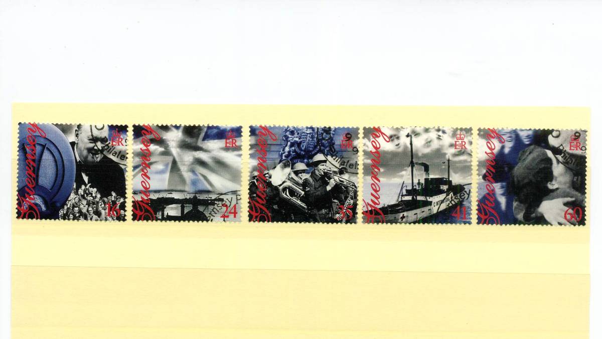 - 英領 ガーンジー島 GUERNSEY 1995年 ◆解放50周年 特印 MNH 5枚 綺麗 送料無料 ◆v-305