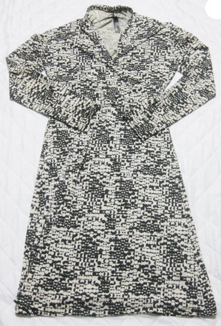 - Lサイズ位 B-O CLUB 長袖 ワンピース カシュクール ツルツル素材 ベージュ×黒