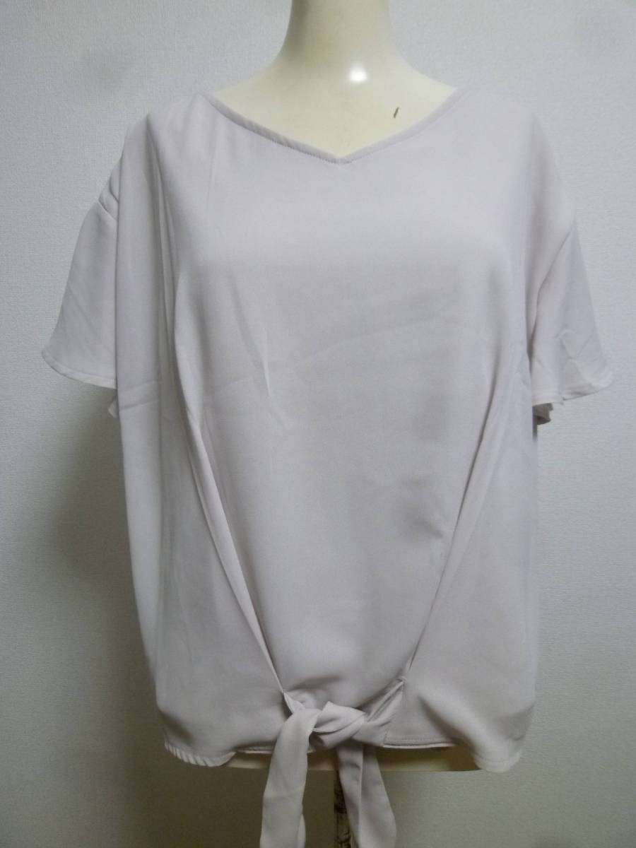- Feroux/フェルゥ◆淡グレー裾リボン両Vネックブラウスカットソー2/オンワード樫山フォーマル結婚式ボリューム袖フリル袖フレア袖◆1129