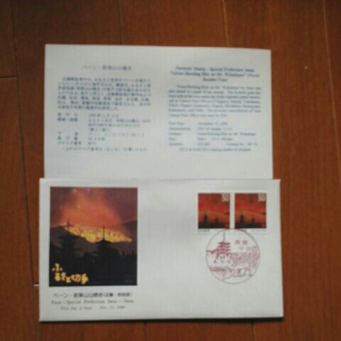 - ♪ ふるさと切手 ペーン・若草山山焼き(近畿・奈良版) 8.11.15奈良中央の消印。 初日印は奈良中央の風景印を使用