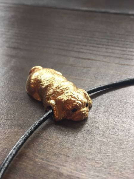 - 即決!送料無料!京都 9689 黒パグ クロパグ 非売品 K18のパグ PUG パグ レザー チョーカー ネックレス ゴールド 金 アクセサリー !!