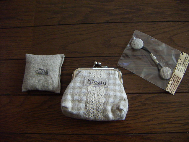- 即決★新品♪ハンドメイド がま口 ヘアゴム サシェ ナチュラル系 3点セット
