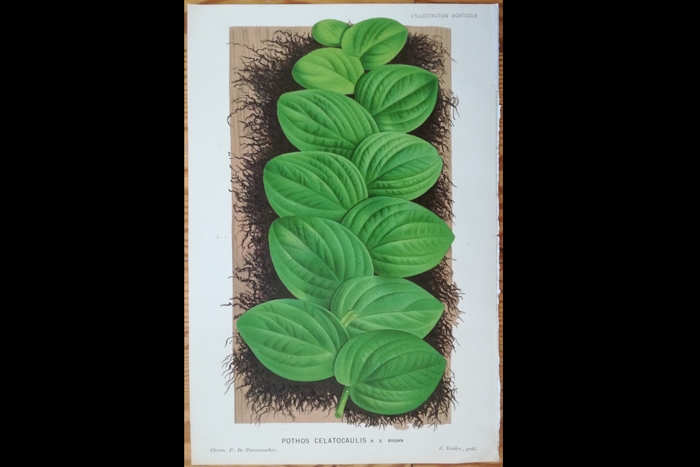- 1883年 ボタニカルアート LINDEN Illustration horticole Colored Print Pothos celatocaulis - 1883