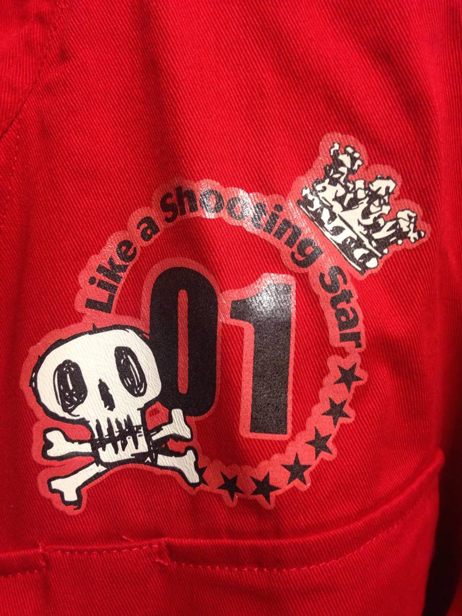 - 新品・オリジナルつなぎ オーバーオール DON つなぎ.net Lサイズ 赤 01 プリント 作業着 STAFF