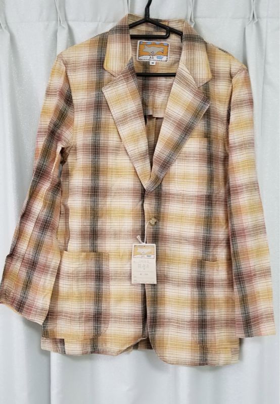 - ざっくりしたコットン素材のチェックのテーラード春夏一枚ものジャケット新品タグ付き