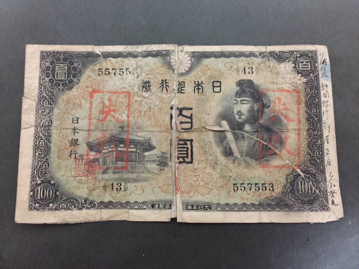- 【大注目!/古紙幣】不換紙幣100円 2次100円 失効印 静岡銀行新居支店 1/30 発見