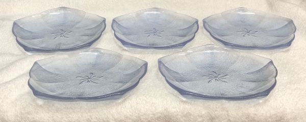 - 未使用品★たち吉 クリスタル 平皿 5枚セット 花形 ブルー 綺麗 箱あり管理1801 H-2