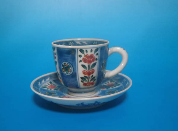 - 九谷焼 九谷美陶園 色絵草花文 カップ&ソーサー珈琲碗皿 手描き 同梱c可