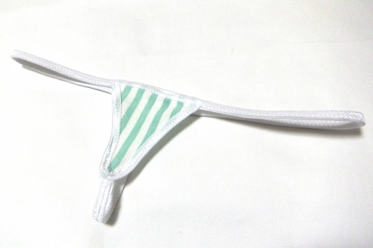 - 【新品】ユニセックス極浅極小のコットンストレッチ生地ミントストライプGストリング