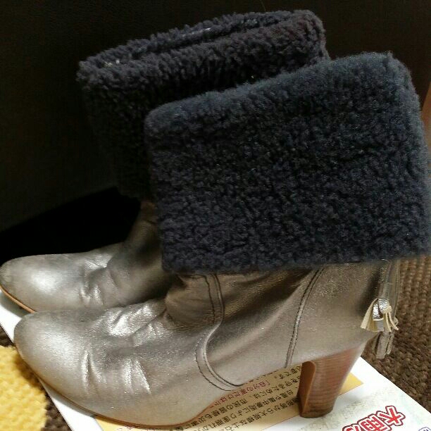 - インポートLove Loveラブラブ シルバー折り返しボア 2wayショートミドルブーツ(フリンジリボン付き)