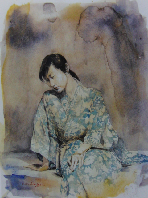 - 額賀加津巳、佇む女、希少な額装用画集より、新品高級額装付、状態良好、送料無料