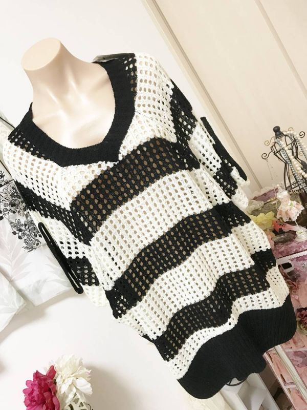 - 【VENCE EXCHANGE】コックス◆メッシュ柄ボーダー*チュニック*クロシェ M