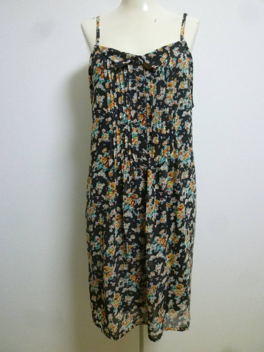 - LOWRYS FARM/ローリーズファーム♪黒小花柄シフォンキャミワンピースL/ブラックミニポイント♪323