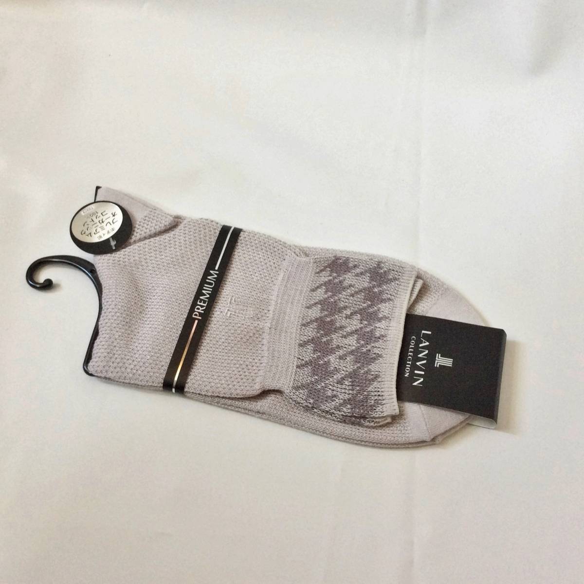 - 新品 百貨店ブランド LANVIN ボディ部 プレミアム オーガニック コットン 100% ソックス ペイルグレー