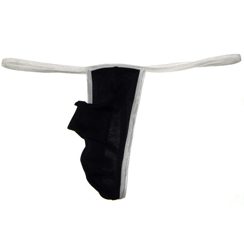 - 【新品】メンズもっこり先出し筒型光沢ナイロンブラックGストリング