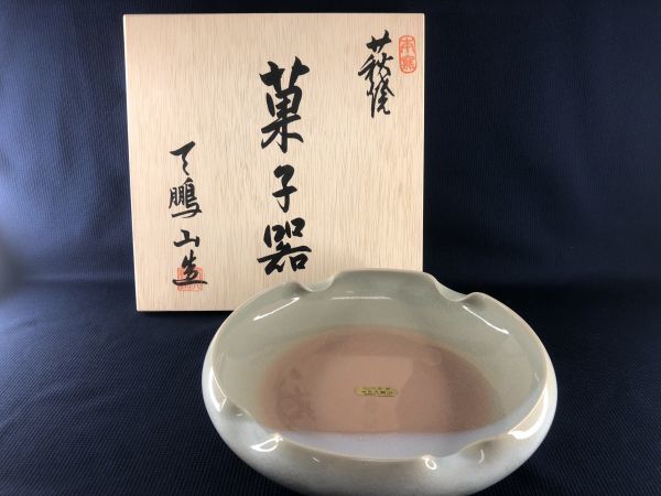 - 未使用品・レア・逸品!★ 萩焼 椿窯 天鵬山 菓子皿 菓子器 盛り皿 共箱あり管理1805 K-2