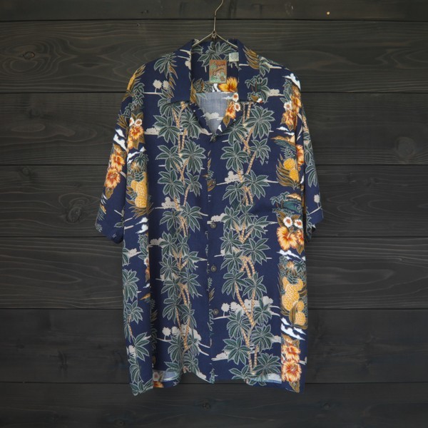 > ★PINEAPPLE CONNECTION★レーヨンアロハシャツ★パイナップル★ネイビー×グリーン×イエロー★L
