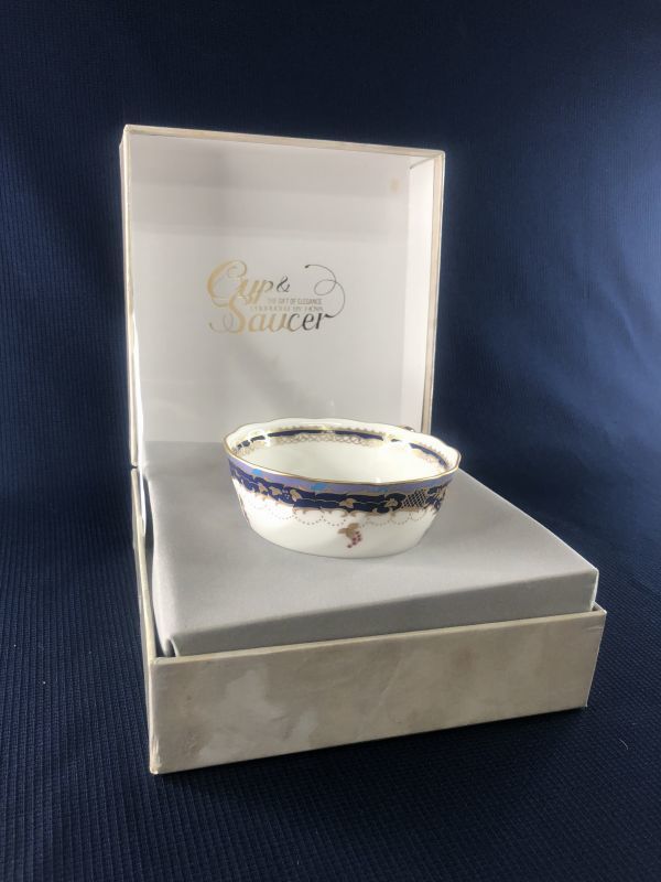 - 未使用品★ HOYA ホヤ チャイナ カップ&ソサー 1客椀皿 青 金彩 箱あり管理1805 K-10