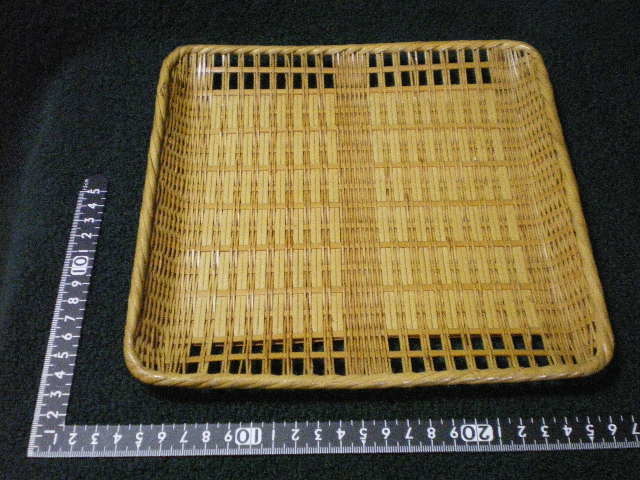 - 珍品フリマ・竹・籐] 竹製 トレー 物入れ とても細かく丁寧な工夫のある編み方 正方形 大きさ:22cm×22cm 厚さ 2cm[送料無料]