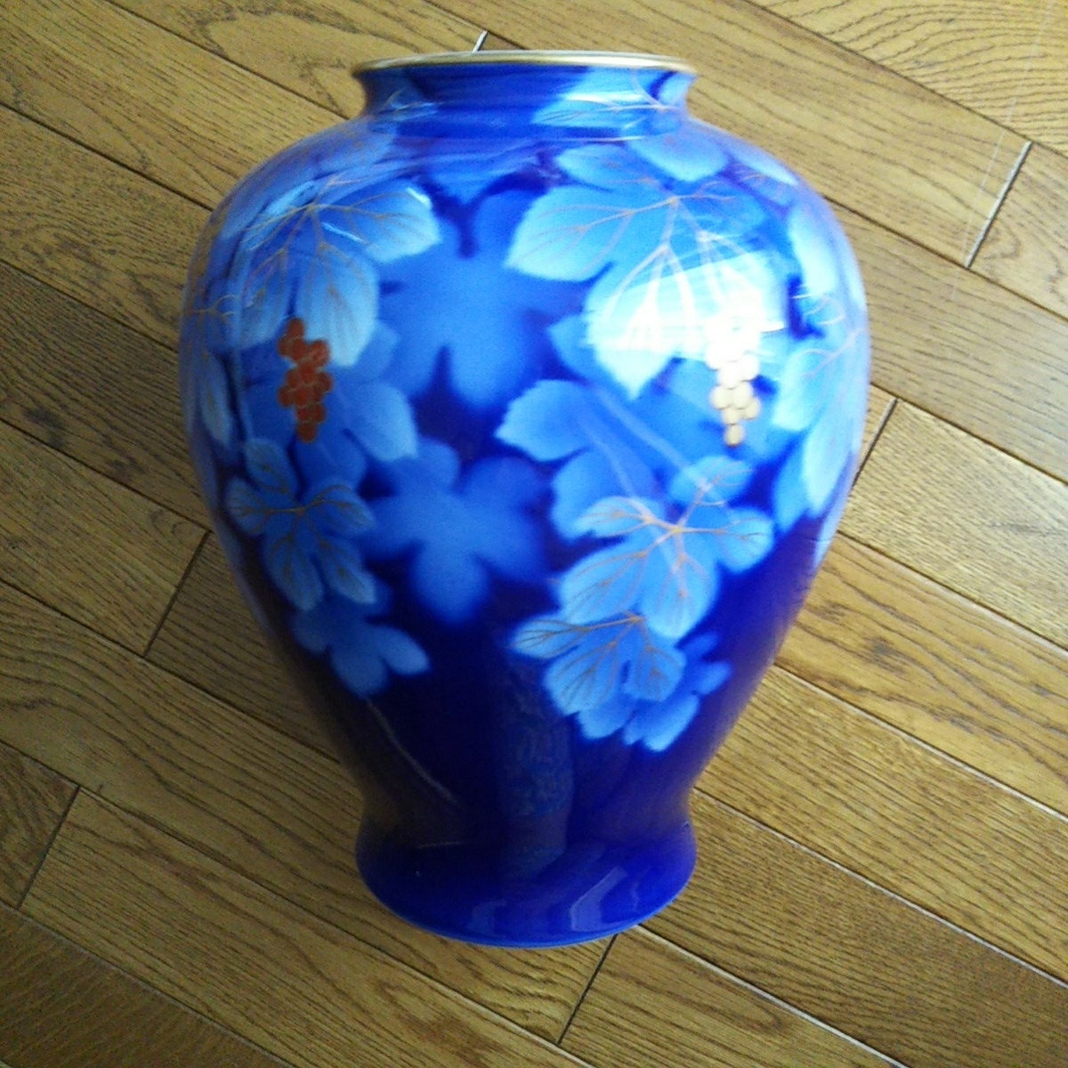 - 深川製 花器 花瓶 紺色 ブルー ぶどう