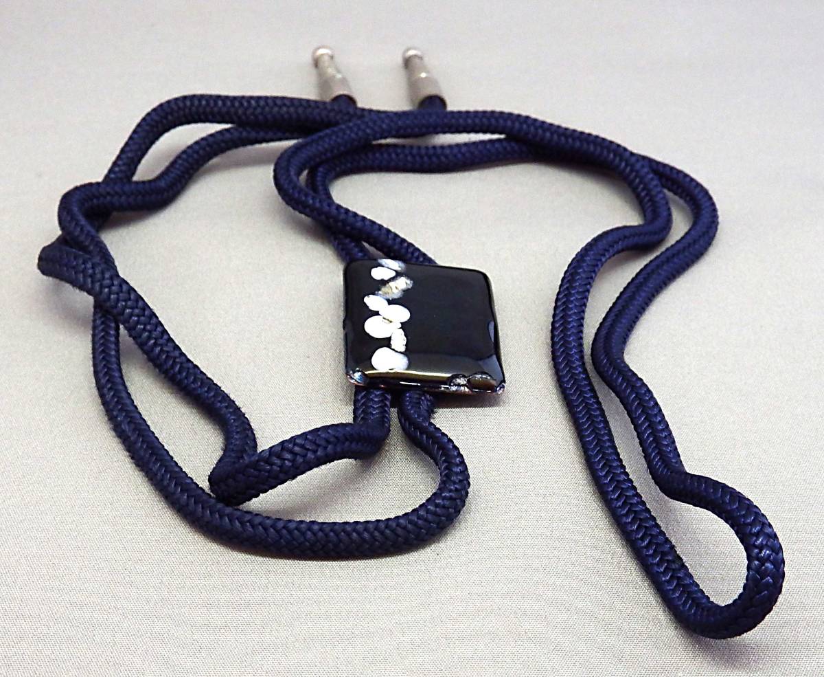 - EU-9380■七宝焼き・エナメル ループタイ 黒・ネイビー 欠けあり 中古