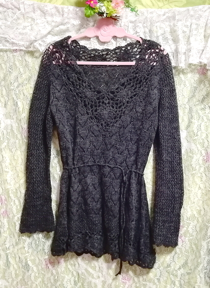 - グレー灰色編みレース/セーター/ニット/トップス Gray knit lace/sweater/knit/tops