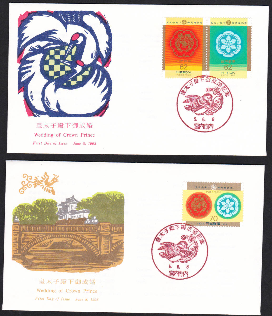 - FDC 1993年 皇太子殿下御成婚記念 2種C JPS