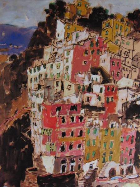 - 児玉幸雄、リオマジョーレの漁村、希少な額装用画集より、新品高級額装付、状態良好、送料無料
