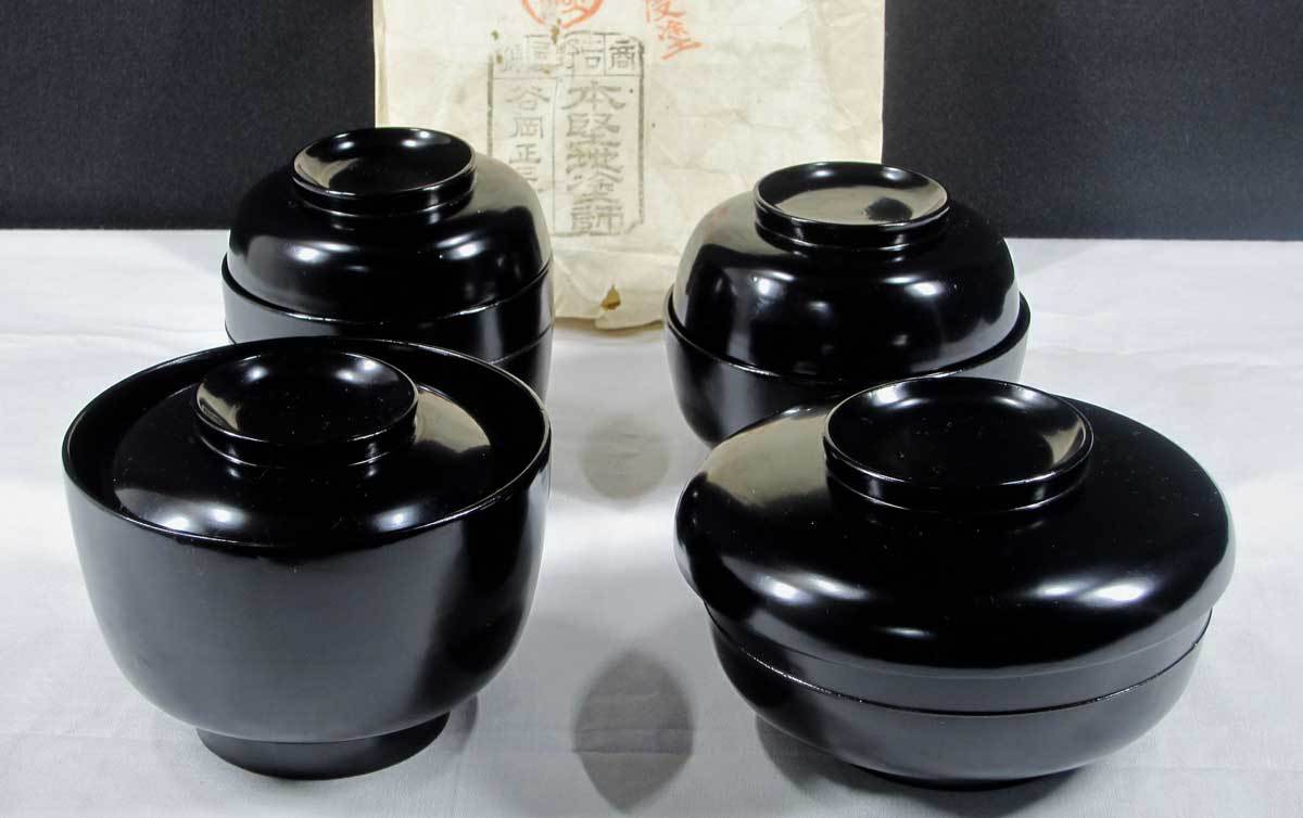- 輪島塗本堅地 二度塗り 膳セット④ 谷岡 正三郎 艶消し 盆無し 昭和8年購入記載